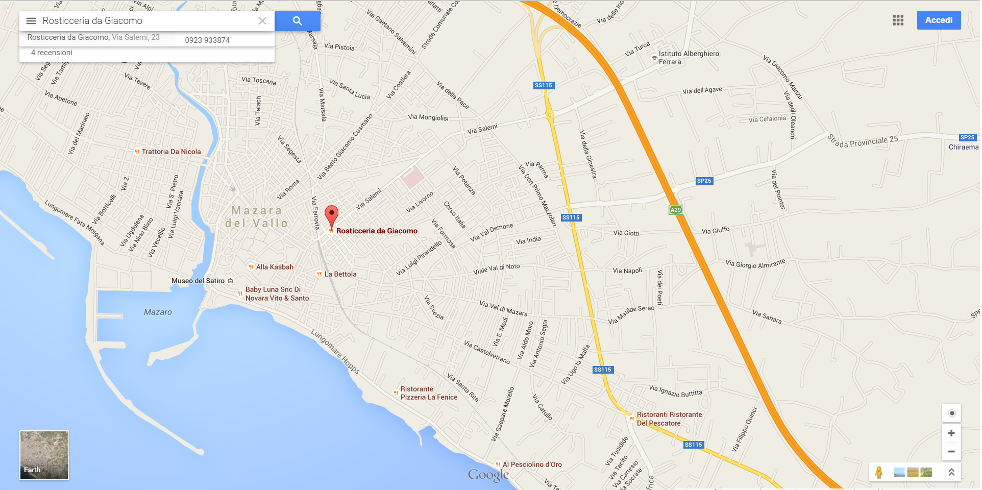 Se raggiungete Mazara tramite servizio ferroviario, il locale disterà a circa 200 metri a piedi: